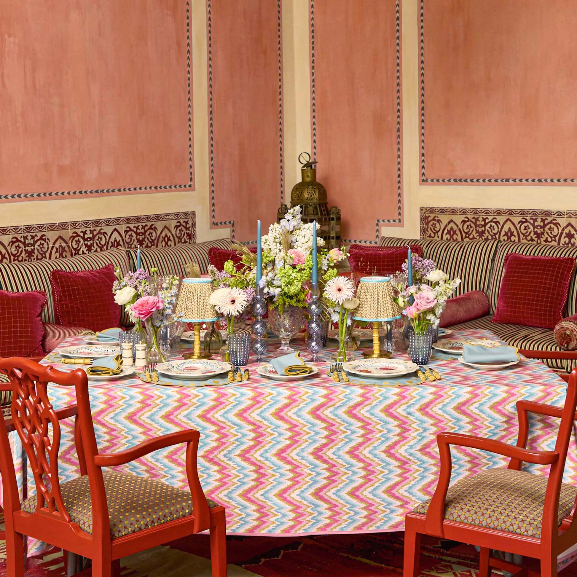 Apportez une touche côtière à votre prochain dîner d'été avec nos sets de table et serviettes Bettina Bleu et Caramel. Ce linge de maison bleu poudré évoque le littoral andalou, tandis que sa riche teinte caramel reflète le sable doré. Ensemble, ces linges de maison s'associent à merveille avec des coloris coordonnés.