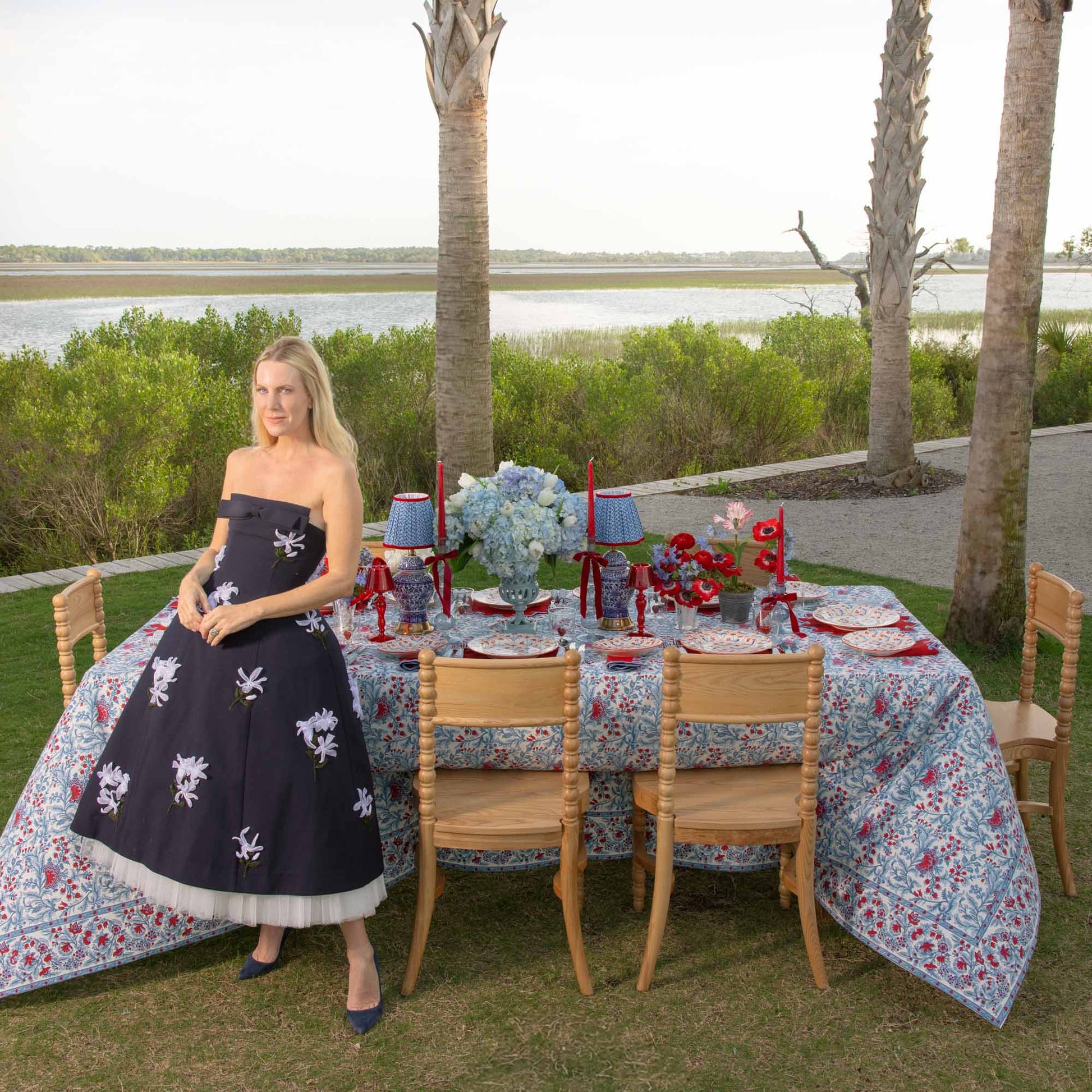 Rehaussez vos décorations du 4 juillet avec nos assiettes plates et plates à motif treillis floral bleu et rouge. Ce service de table pour quatre personnes comprend des assiettes plates et plates ornées de notre élégant motif treillis floral. Associez-les à du linge de maison assorti et à des nappes patriotiques pour un look festif.
