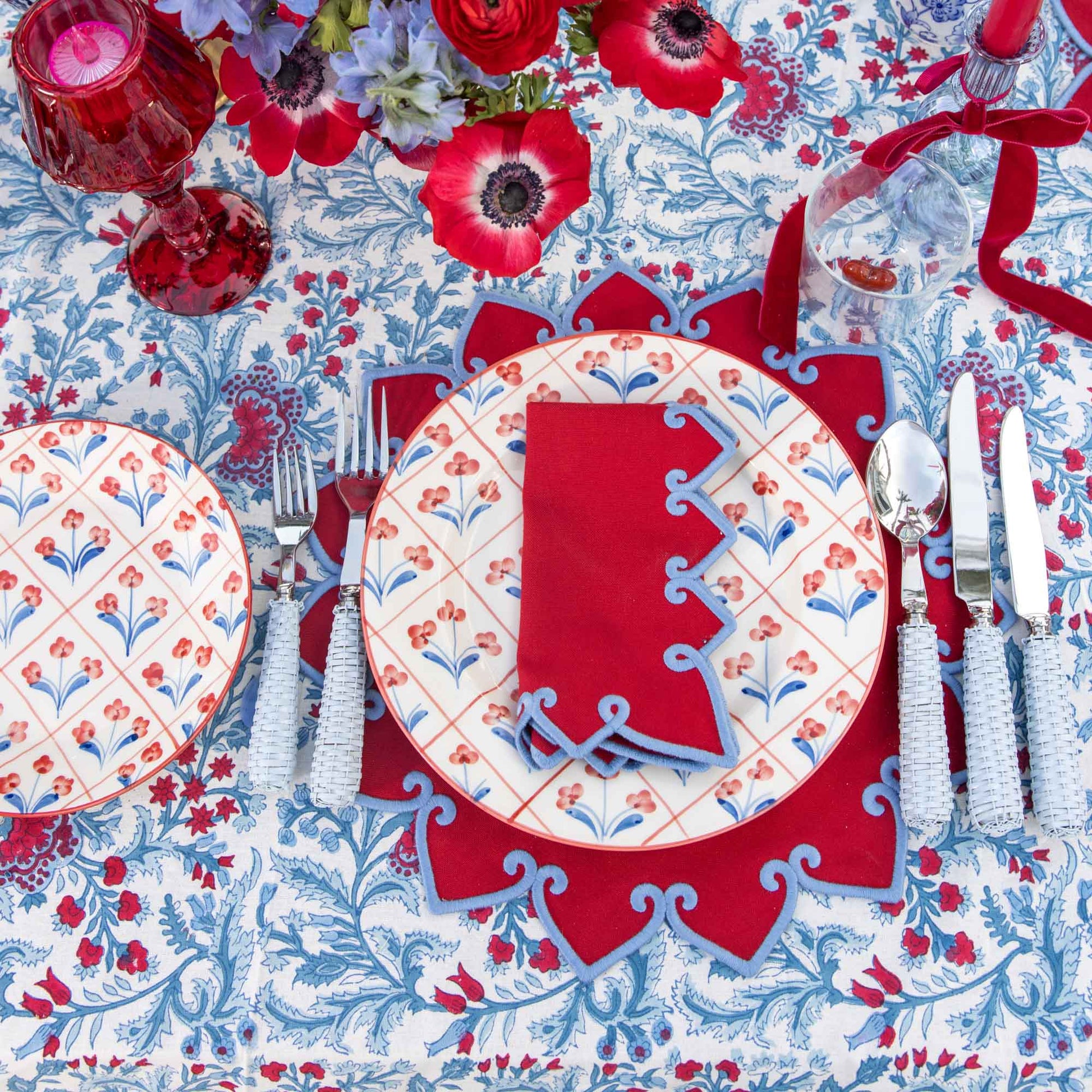 Assiettes de démarrage à motif treillis floral bleu et rouge (lot de 4)