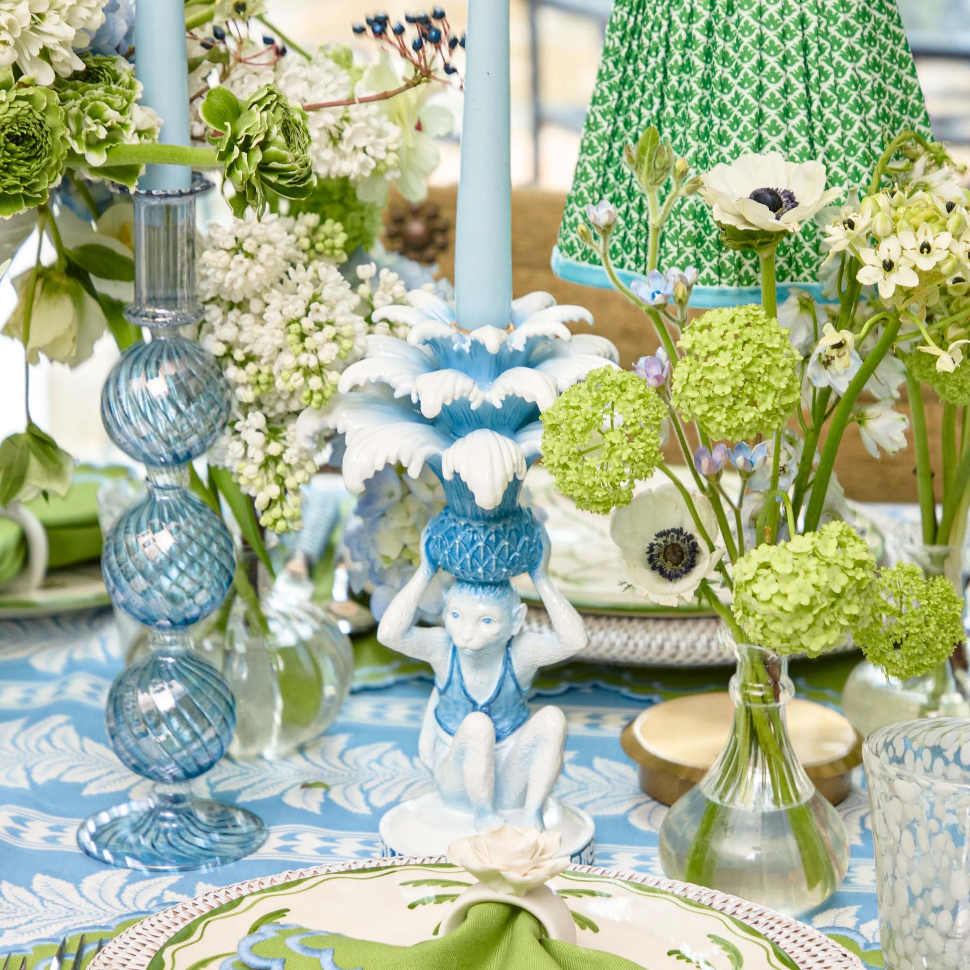 Laissez-vous tenter par la fantaisie de cette saison avec nos bougeoirs Singes Bleus. Ce duo de singes espiègles, décliné dans une douce palette de couleurs bleu azur et blanc, apportera une touche de gaieté à vos tables.