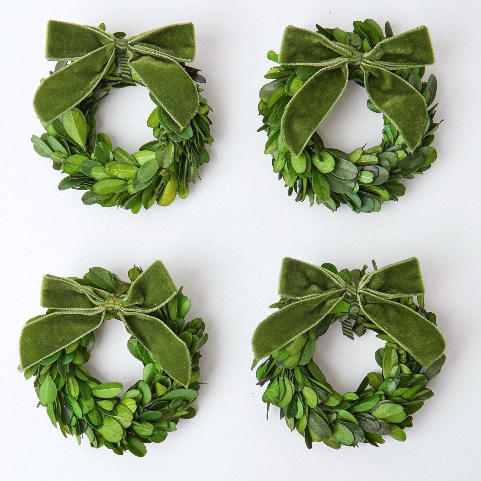 Couronnes de buis avec nœuds en velours vert (lot de 4)