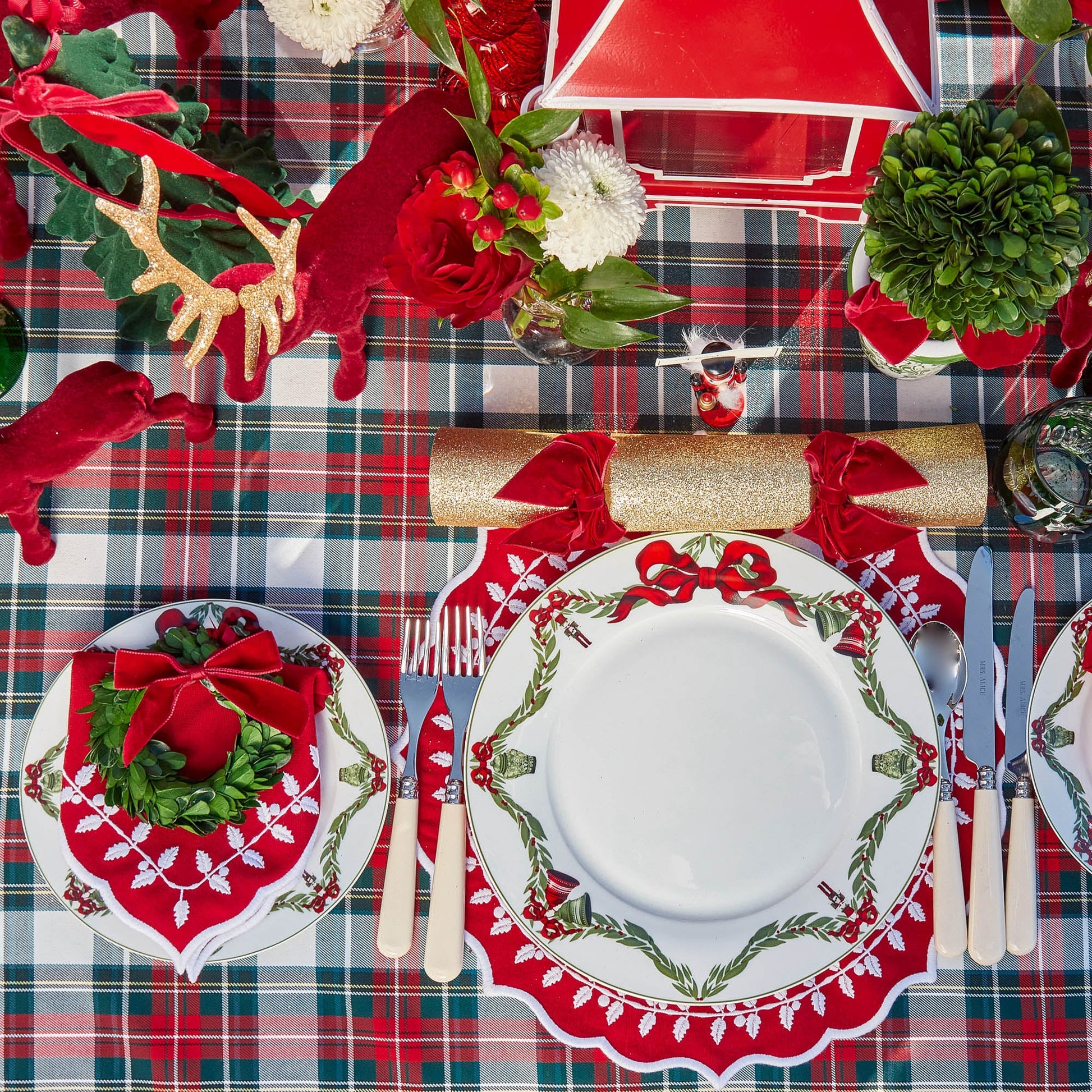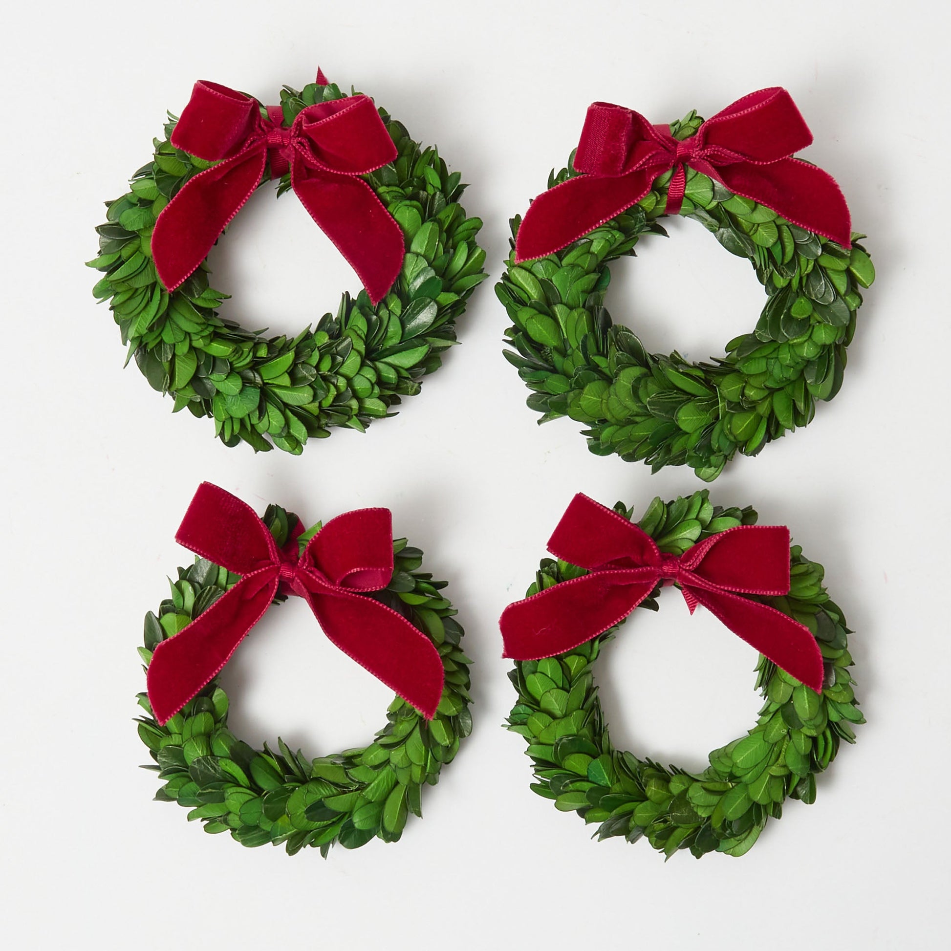 Couronnes de buis avec nœuds en velours rouge (lot de 4)