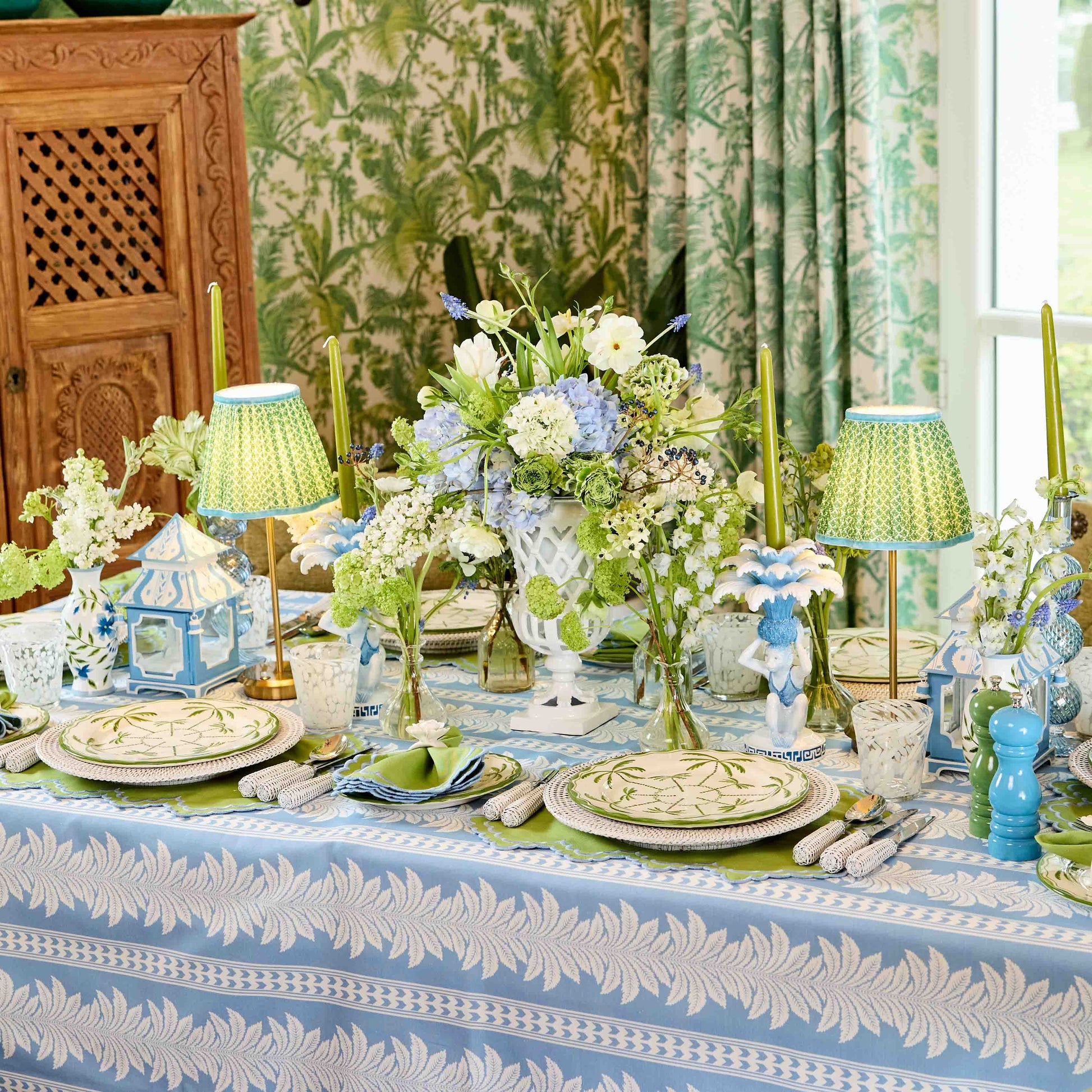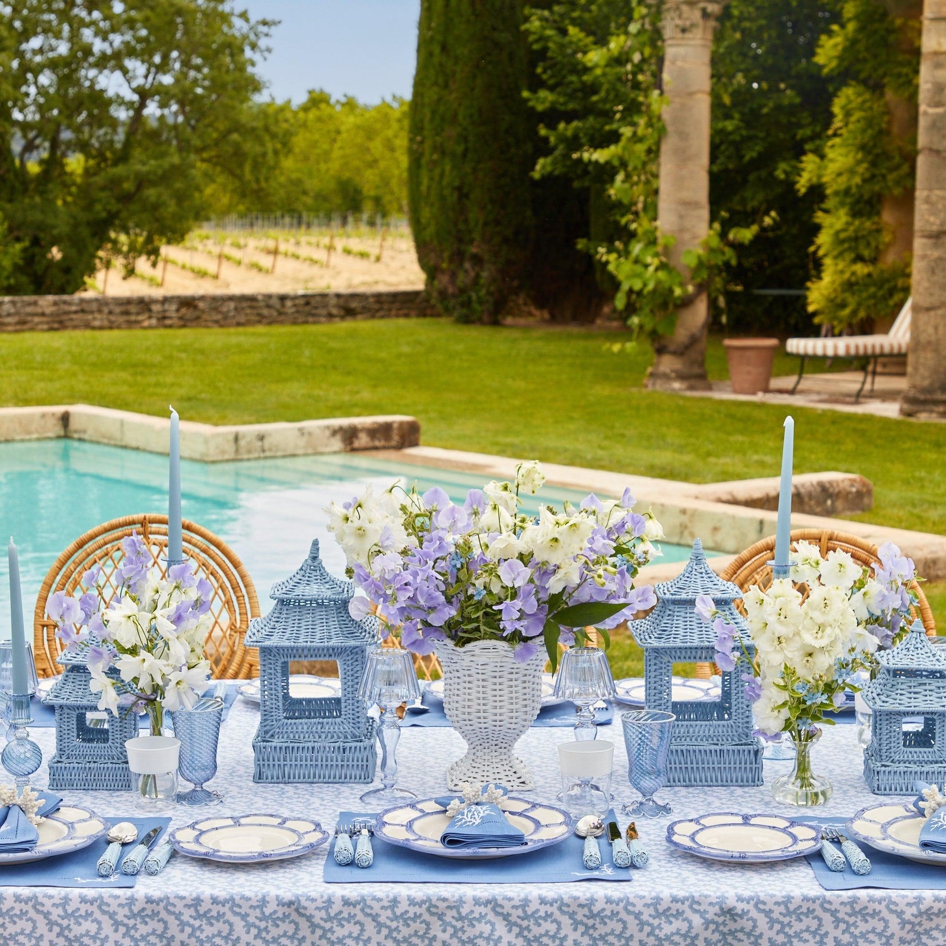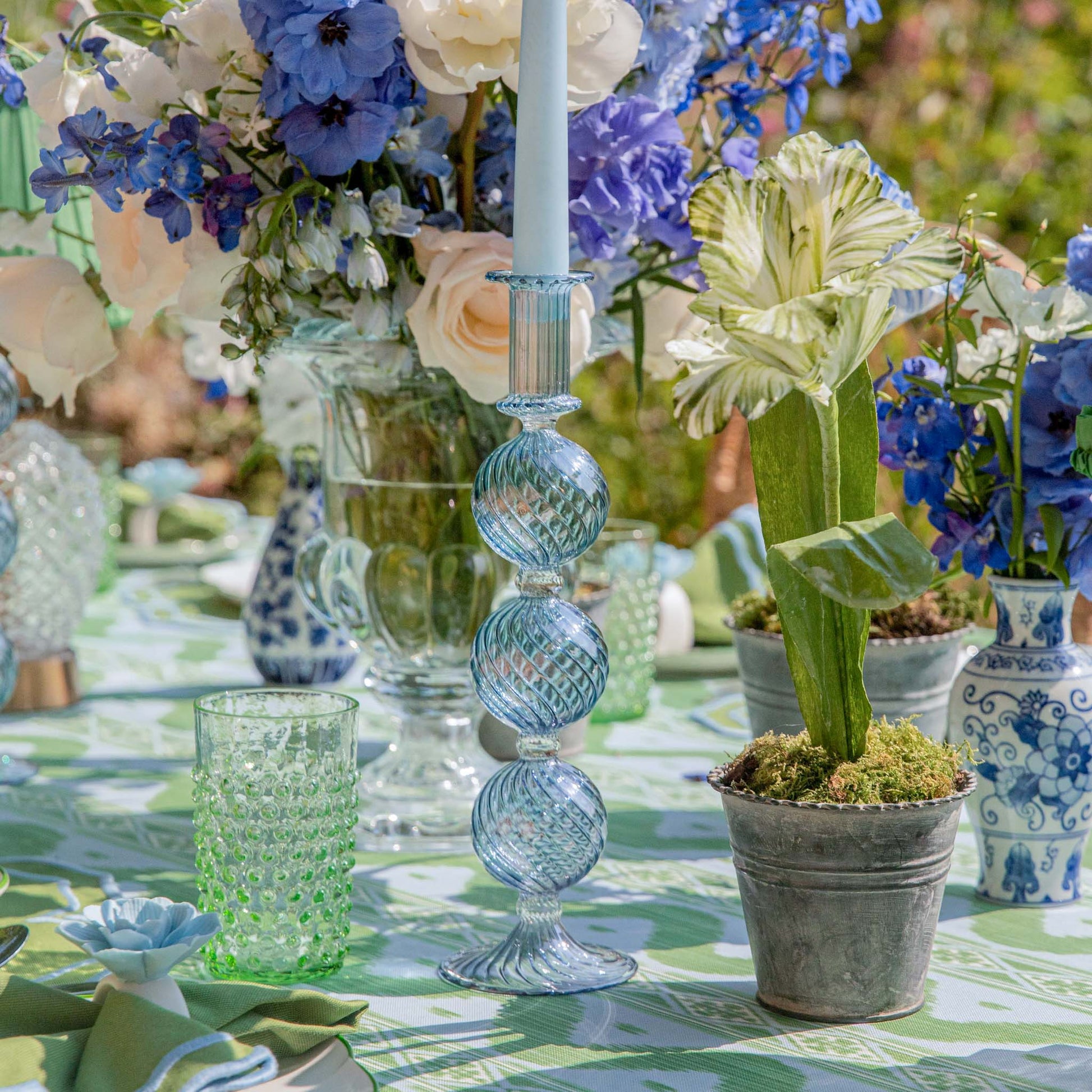 Notre élégant ensemble de bougies Camille Azure apporte la beauté de la lumière des bougies à n'importe quelle table de salle à manger ou de cuisine.