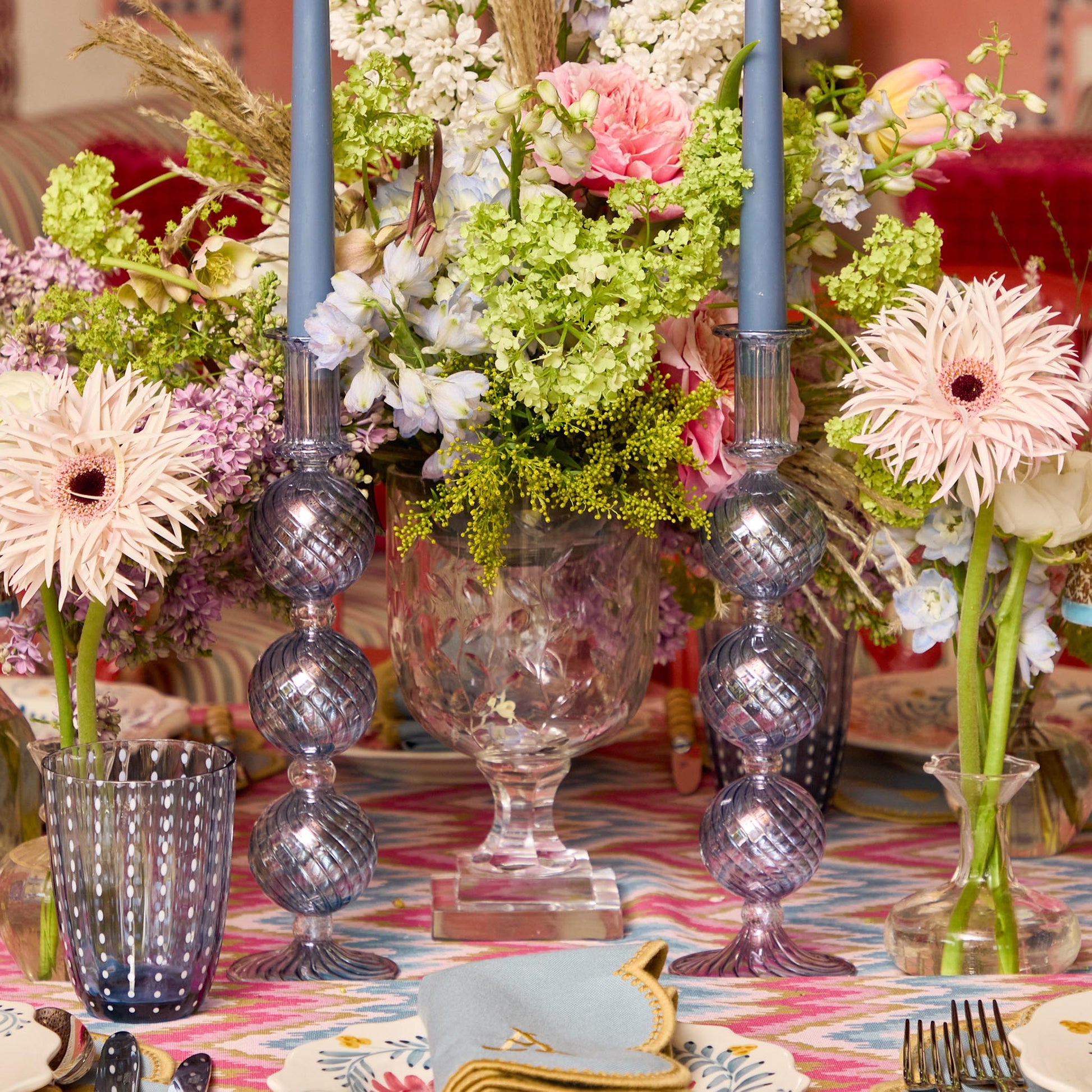 Apportez une touche de sérénité à vos tables avec notre coffret de bougies Camille Azure. Cette collection sereine de quatre bougeoirs en verre soufflé vous propose des pièces de différentes tailles, ainsi qu'un lot de bougeoirs en cire naturelle bleu poudré.