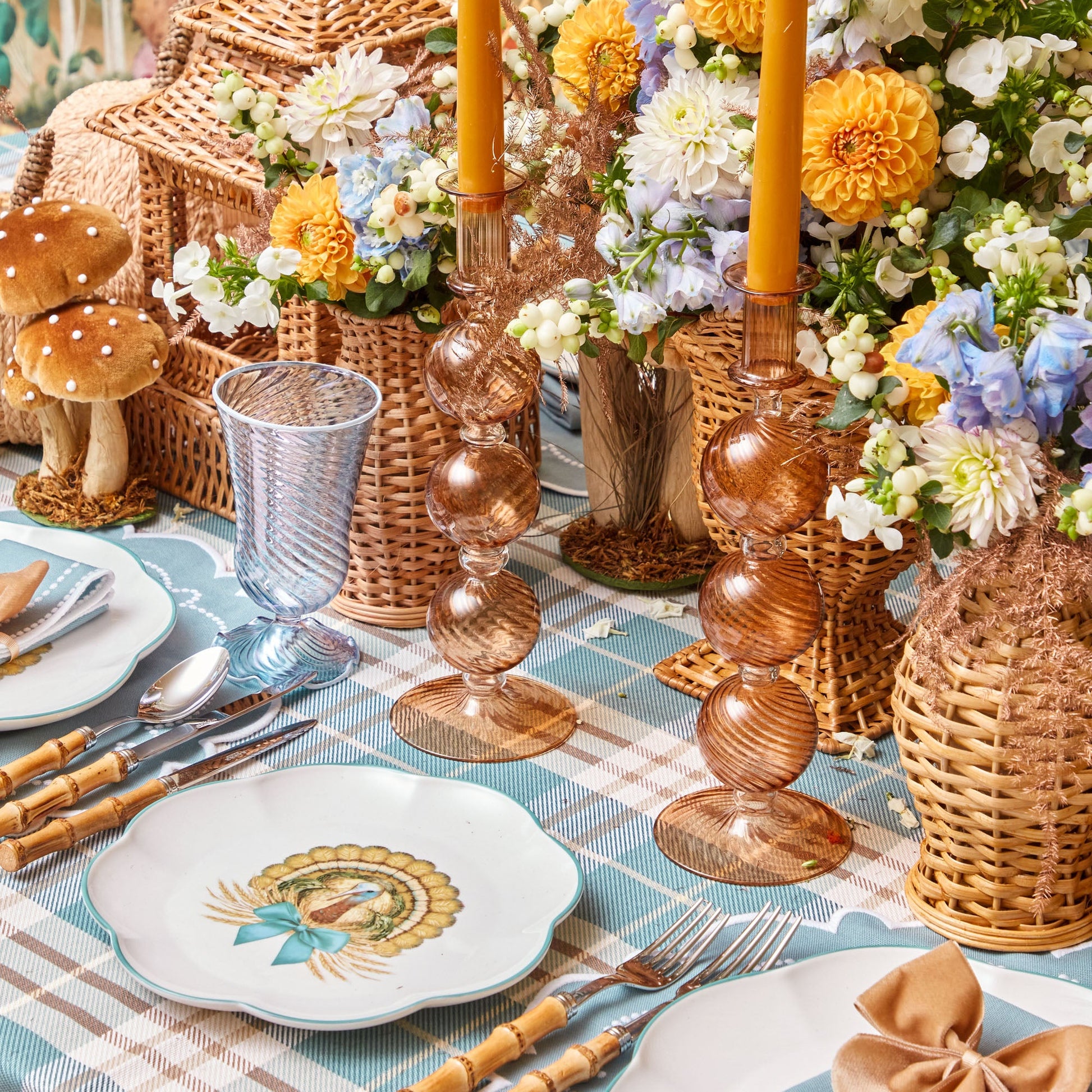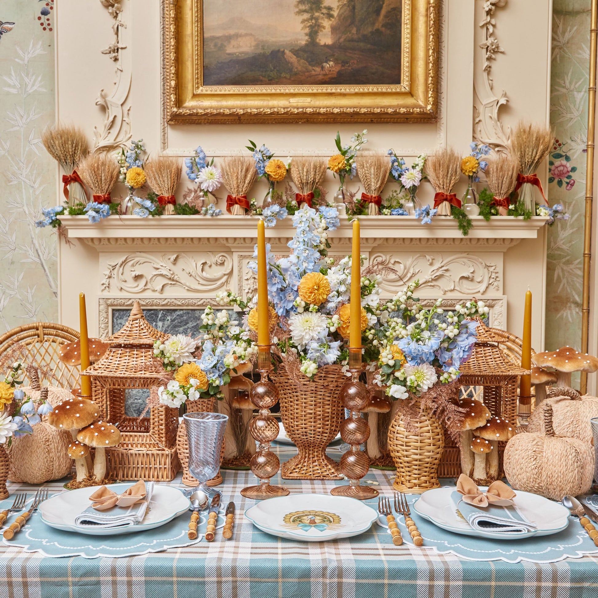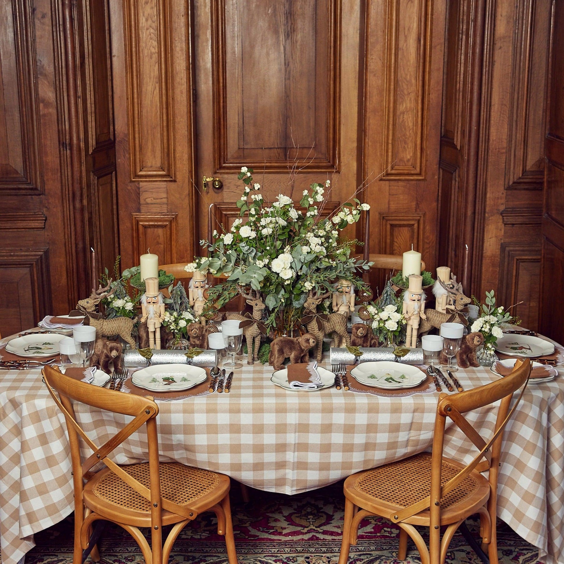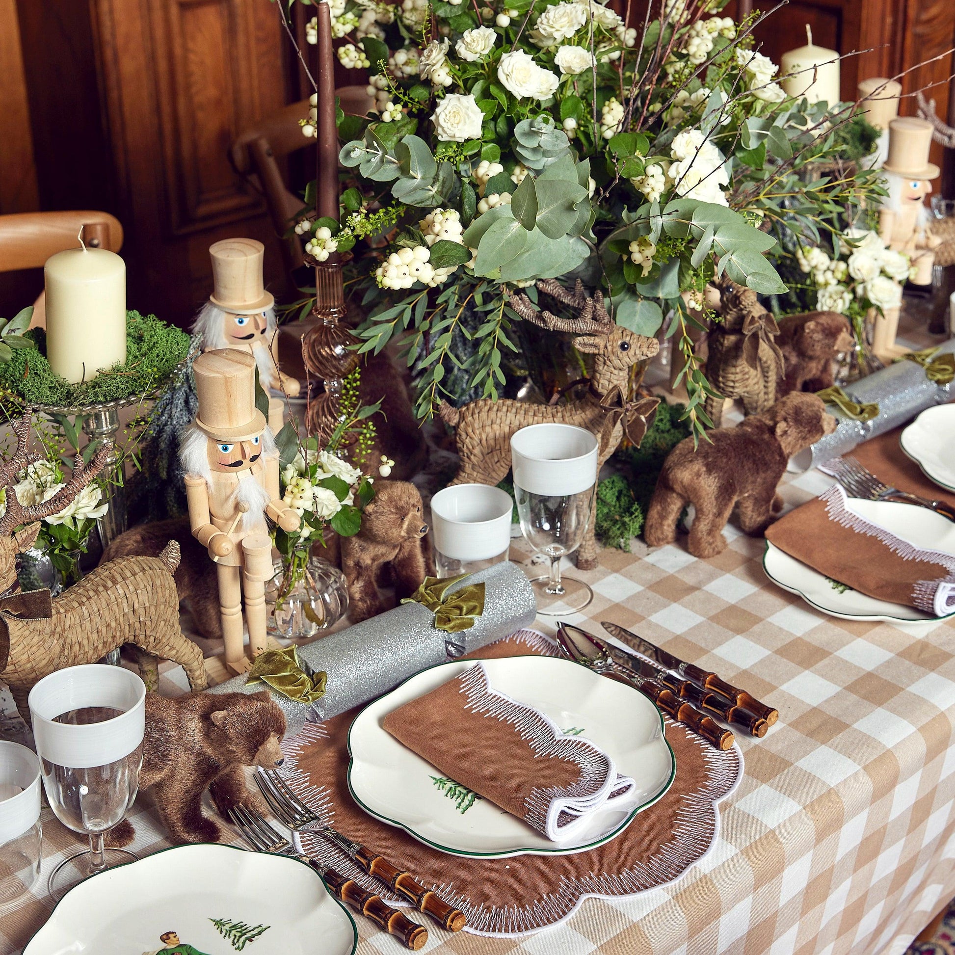Fabriqués dans une teinte naturelle de marron châtain, ils peuvent être disposés avec notre nappe Biscuit Gingham , nos assiettes plates Heidi & Hans Skier et notre ensemble de verres White Ribbon.