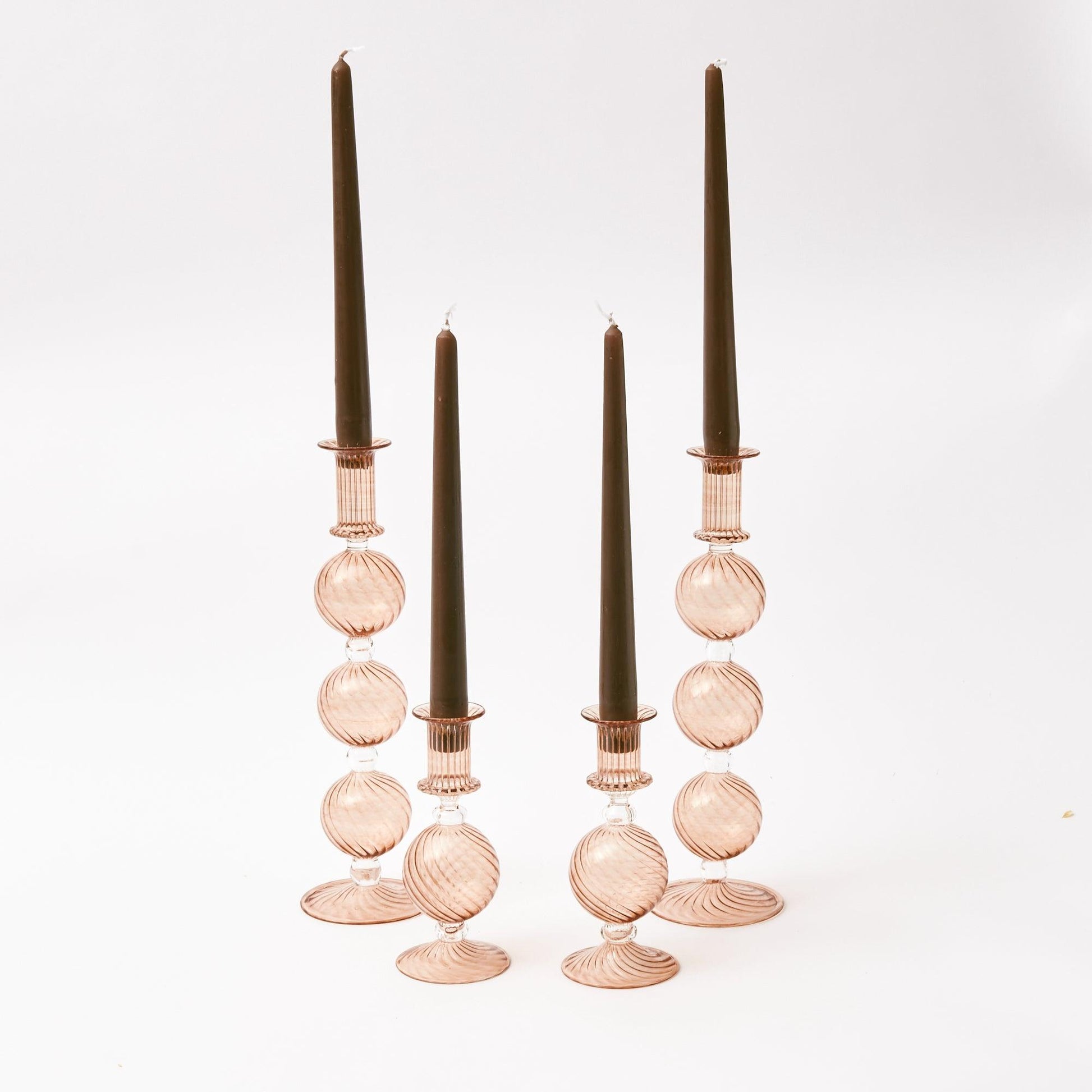 En raison de leur fragilité, il suffit de les essuyer délicatement avec un chiffon doux et sec. Évitez tout contact avec l'eau. En raison de leur charme soufflé à la main, les bougeoirs peuvent varier légèrement en taille et en forme.