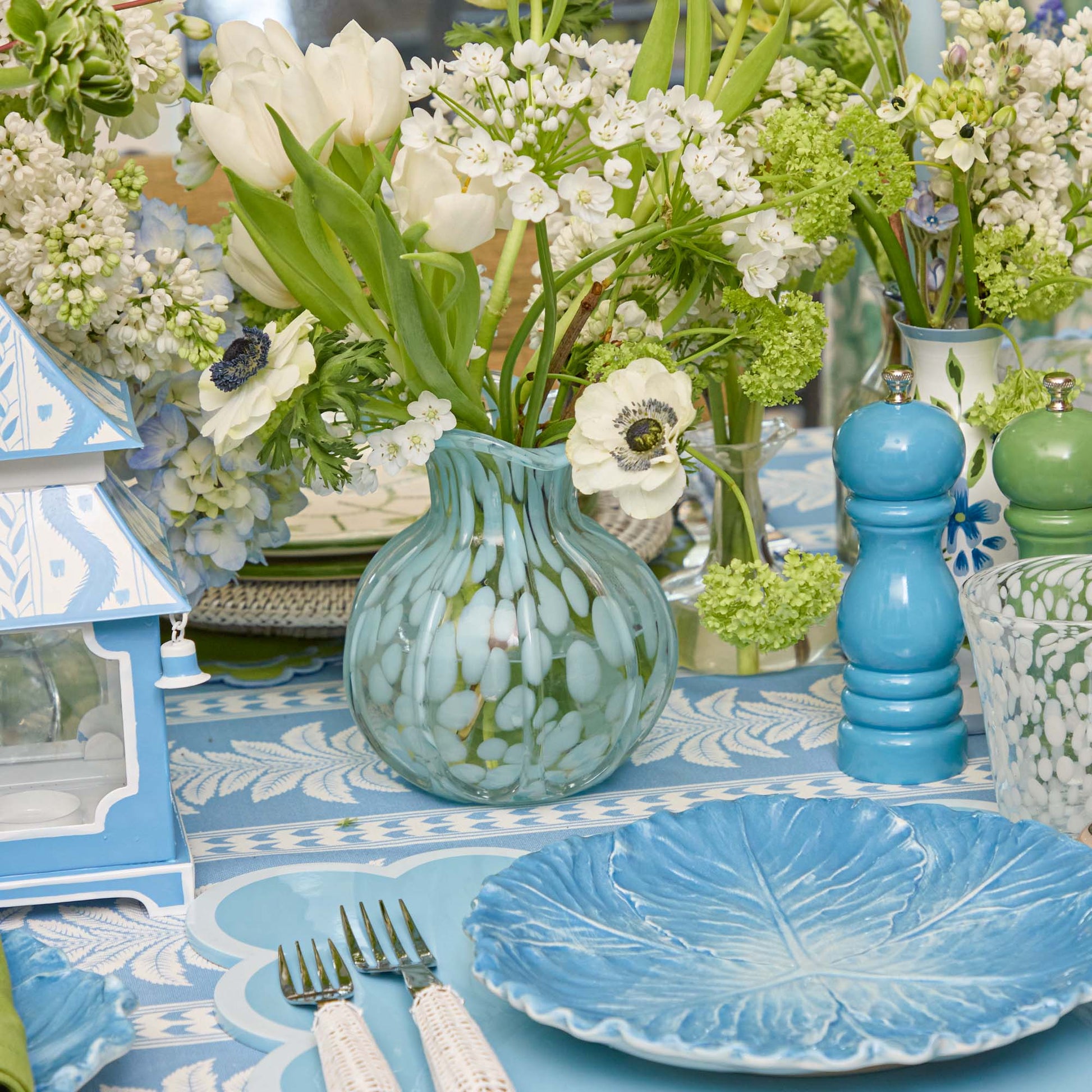 Inspiré par le soleil andalou, notre trio de vases en verre pommelé met parfaitement en valeur le scintillement des rayons du soleil. Chaque pièce est déclinée dans un ton pastel clair et présente un motif pommelé unique ainsi qu'un col élégant.