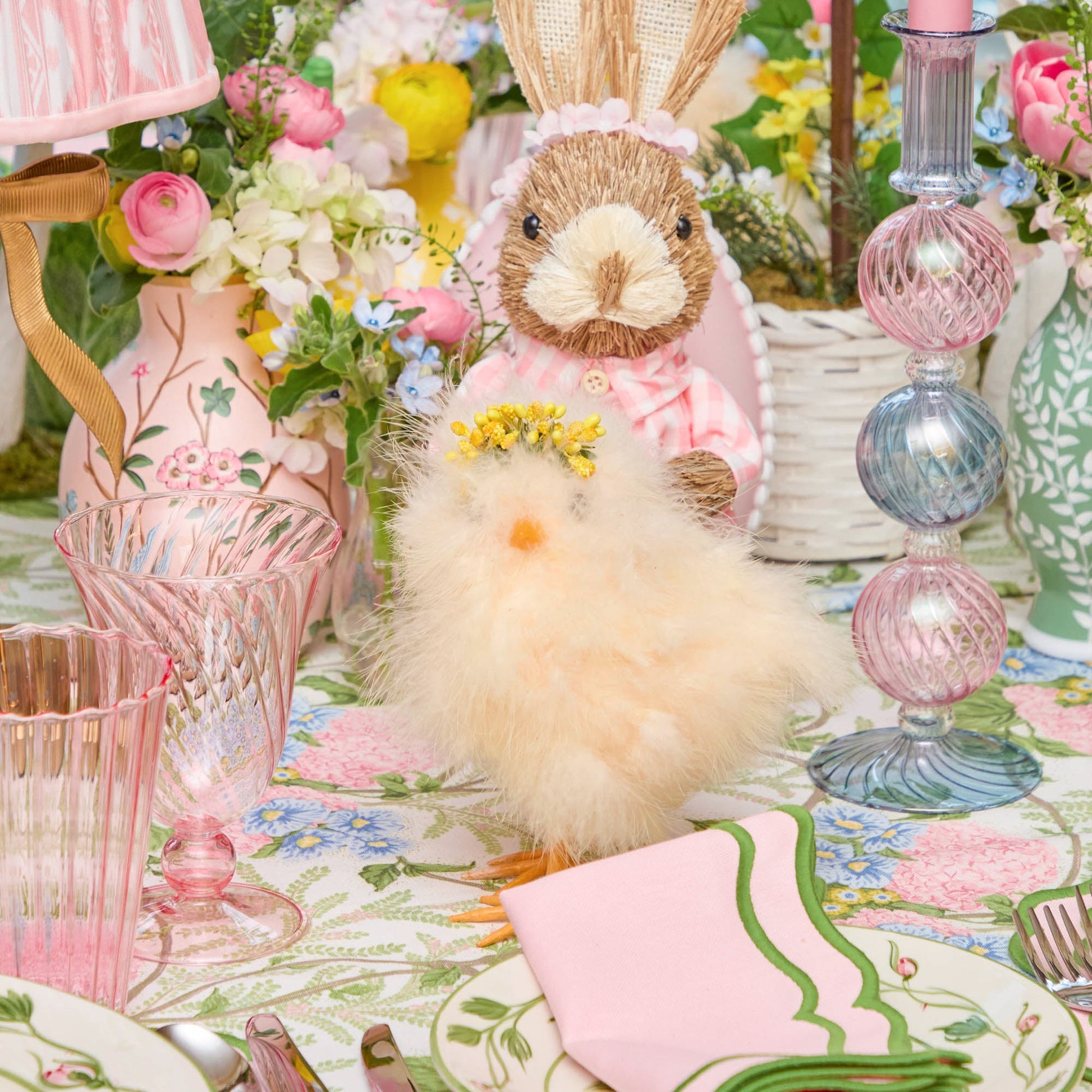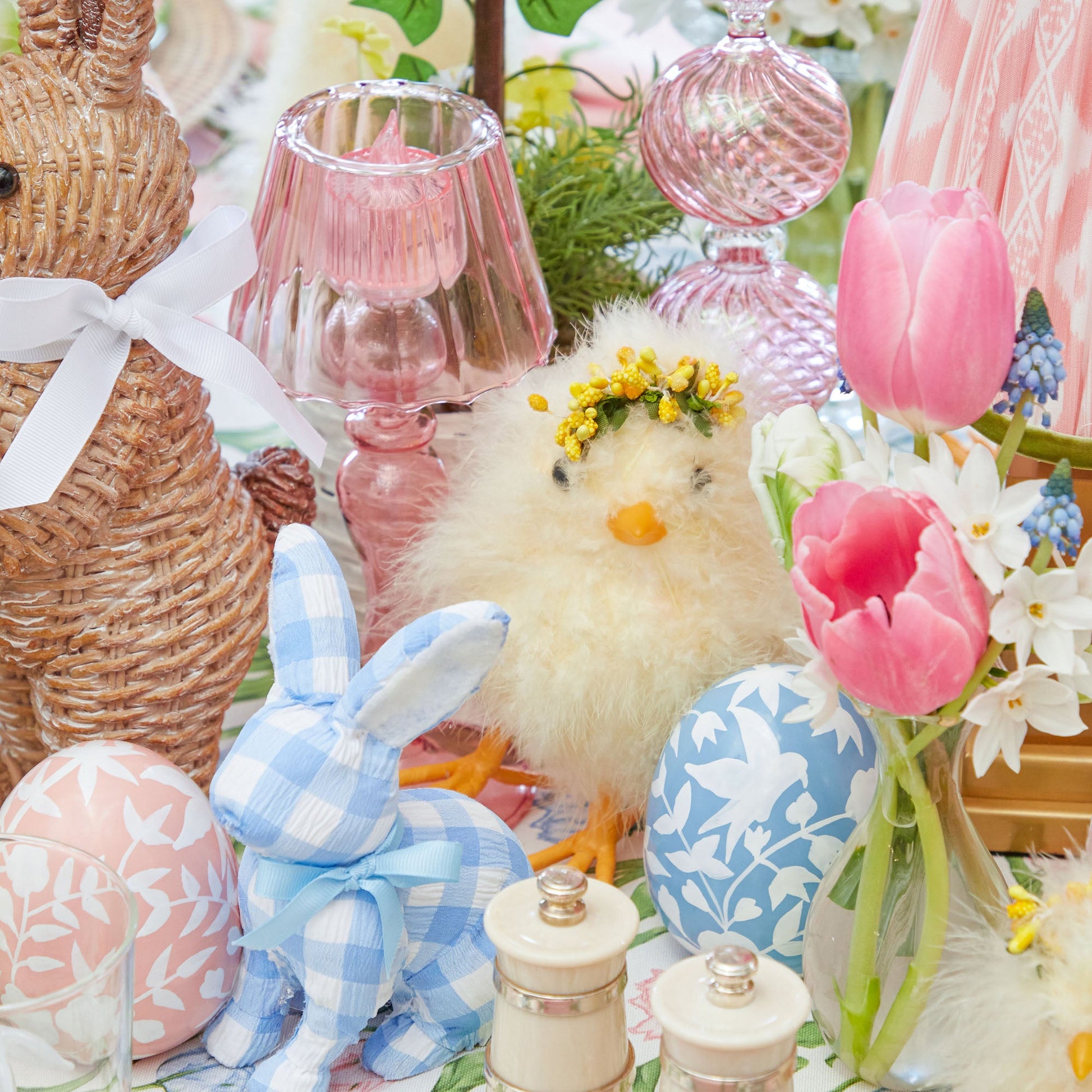 Nos adorables grands poussins jaunes tout doux sont un incontournable pour une table de Pâques. Ces petites pièces moelleuses sont ornées de couronnes de fleurs miniatures, parfaites pour apporter la joie du printemps à votre intérieur.