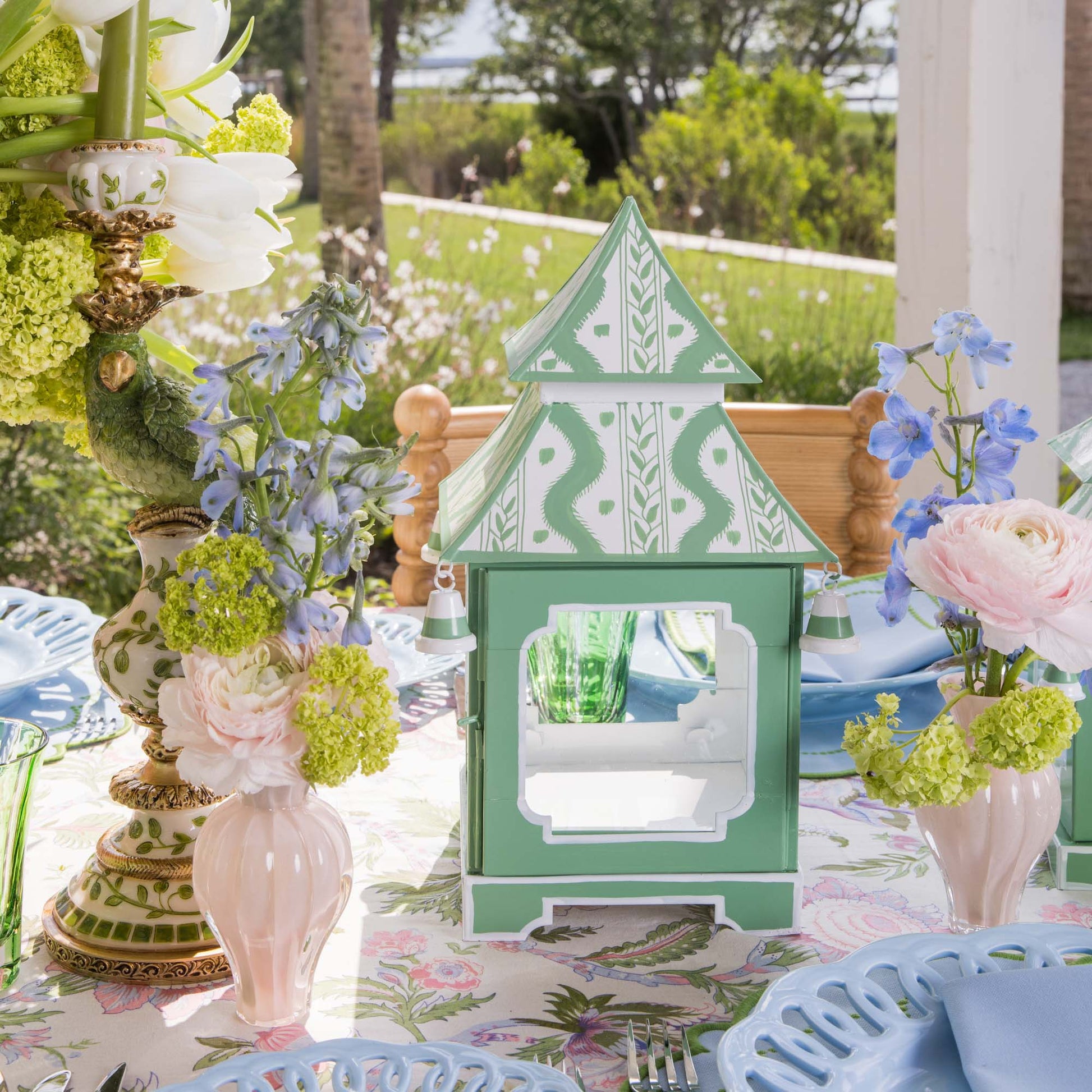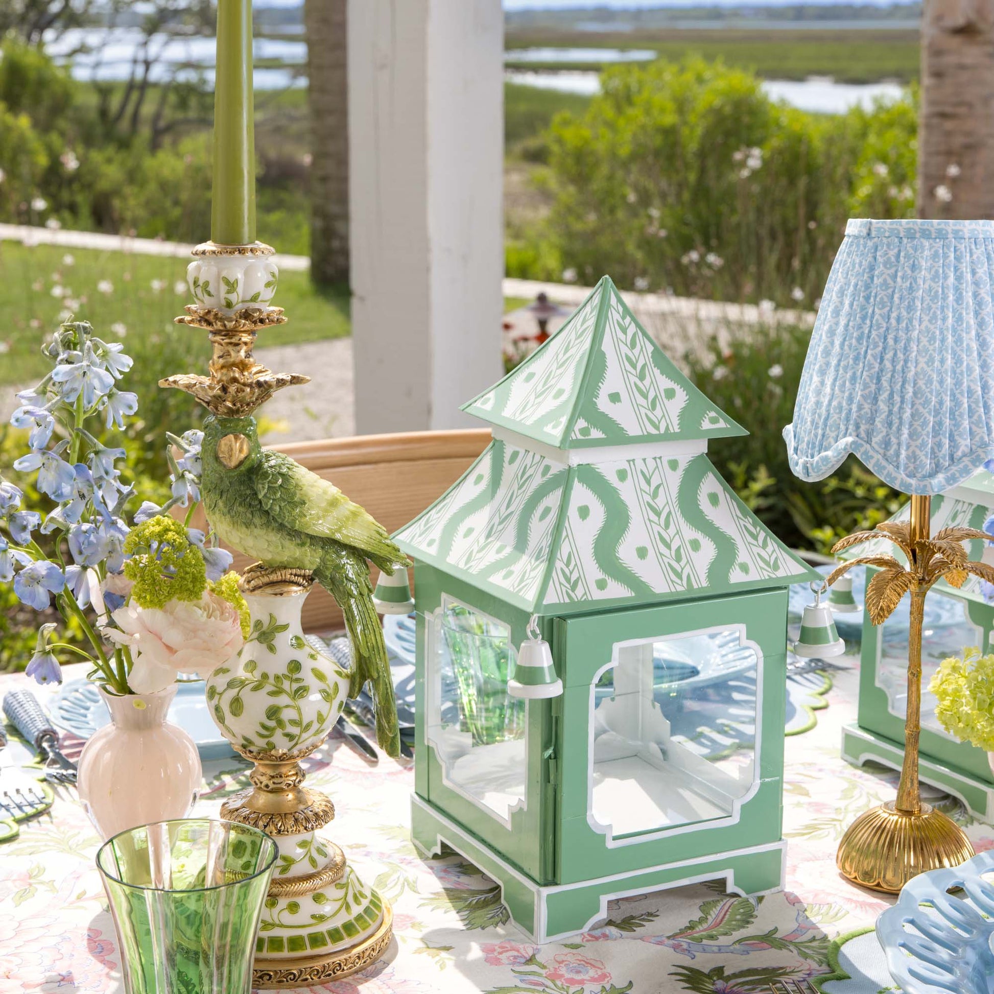 Notre paire de mini-lanterne pagode Ikat verte est le duo idéal pour ajouter caractère et charme à votre décoration cette saison. Petite et ludique, cette paire arbore notre motif Ikat emblématique et évoque la beauté de la nature luxuriante du Sud.