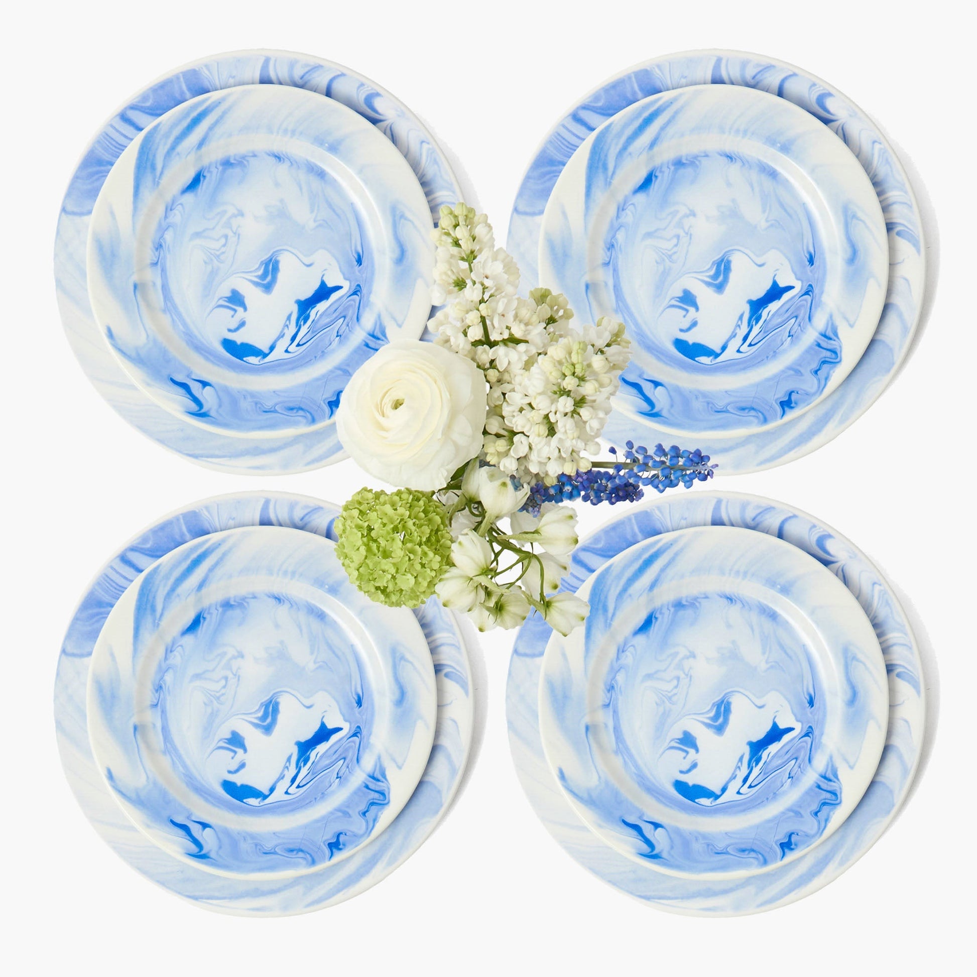 Assiettes à dîner et à entrée Julia Blue Marbled (lot de 8)