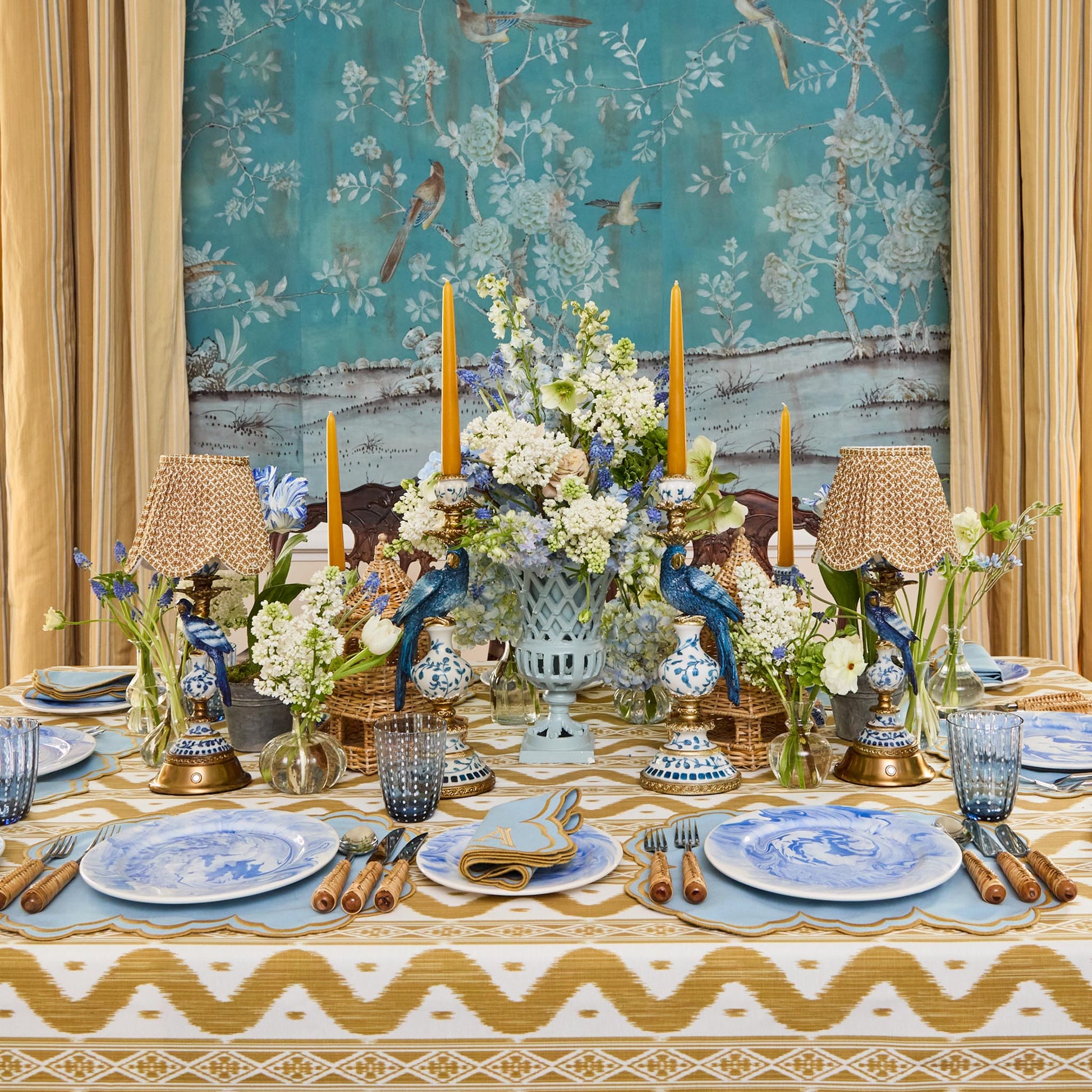 Nos assiettes plates et d'entrée Julia en marbre bleu s'inspirent des tons azur de la côte andalouse. Ce service pour quatre personnes comprend une assiette d'entrée et une assiette plate, qui s'emboîtent parfaitement pour créer un décor de table. Chaque assiette en céramique est ornée d'un lavis bleu et blanc fantaisiste, évoquant les vagues s'écrasant sur le sable espagnol.
