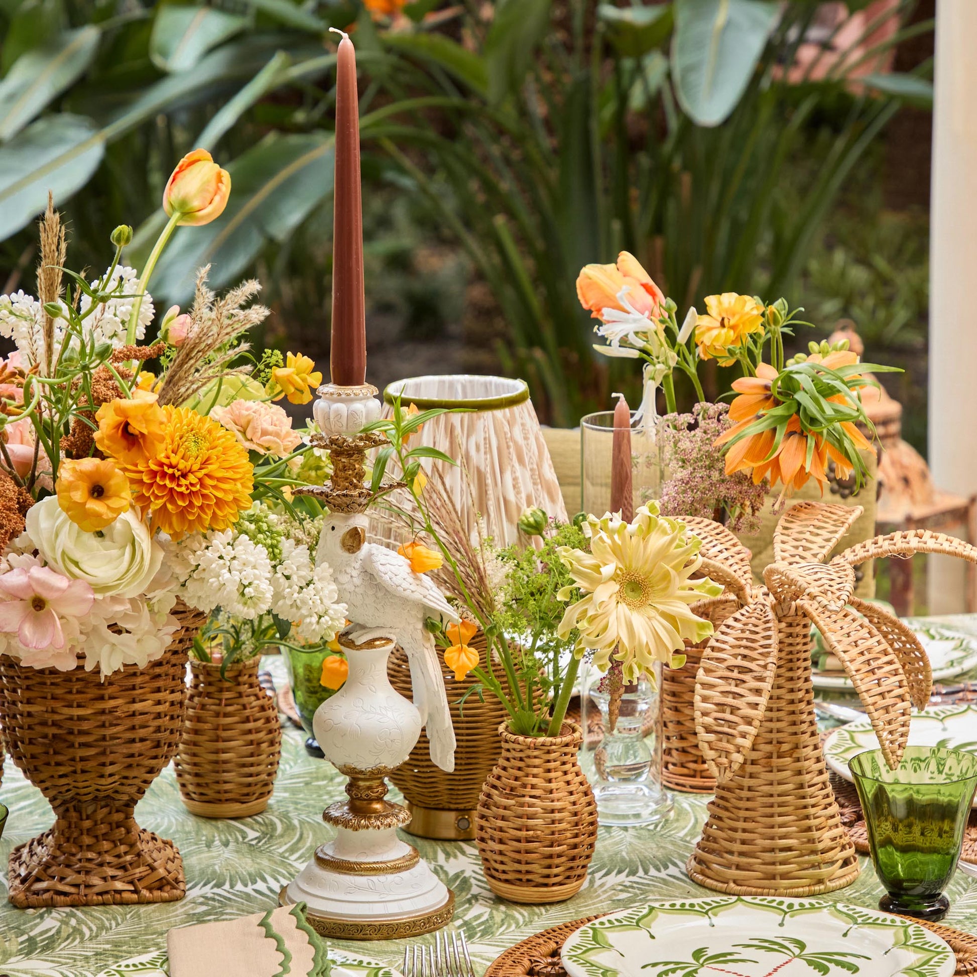 Transportez vos invités dans les paysages luxuriants de l'Andalousie avec nos grands palmiers en rotin. Ces magnifiques pièces en rotin, tressées à la main par nos artisans qualifiés, ajouteront une touche de texture à votre table. Associez-les ensemble pour un look coordonné ou séparément pour une ambiance tropicale.