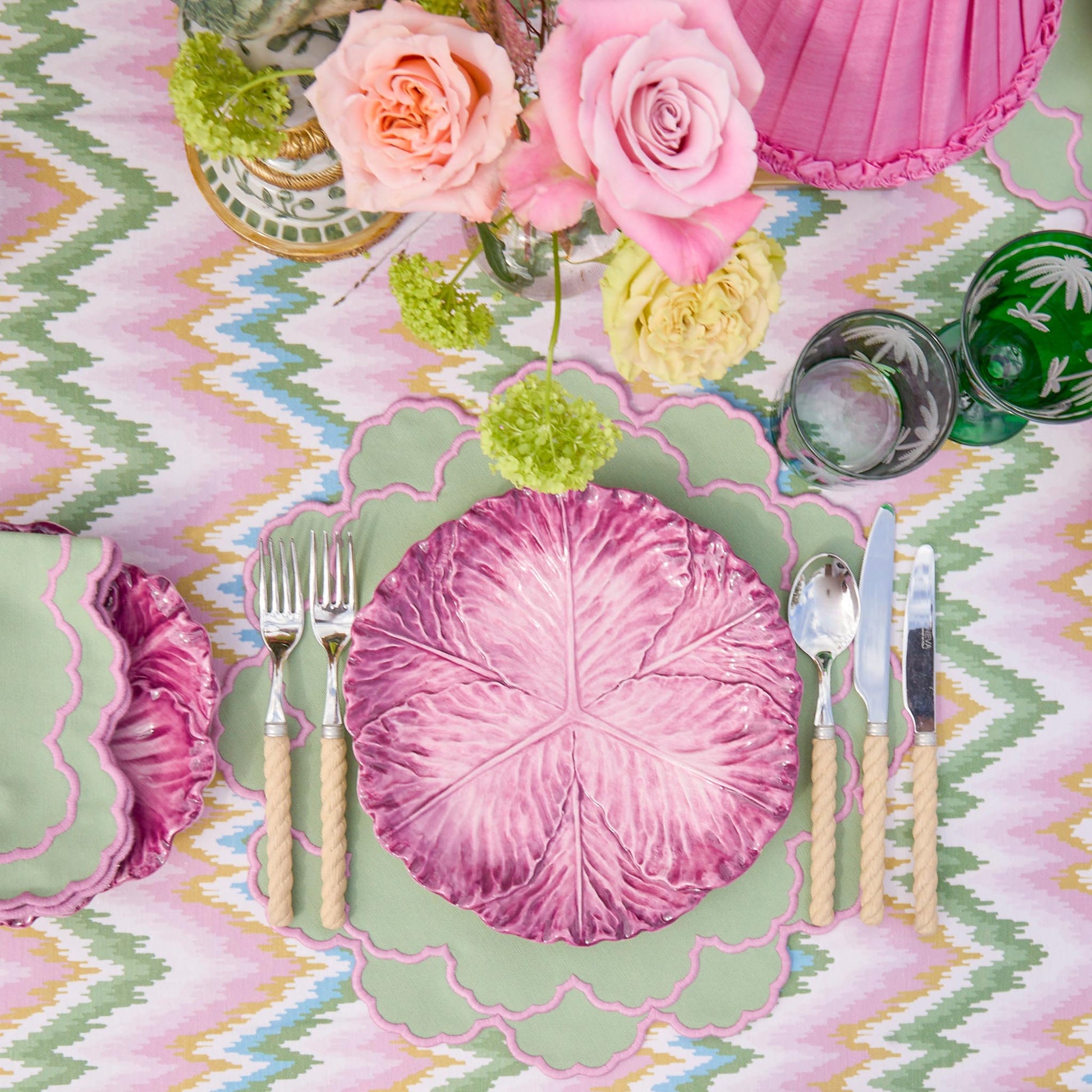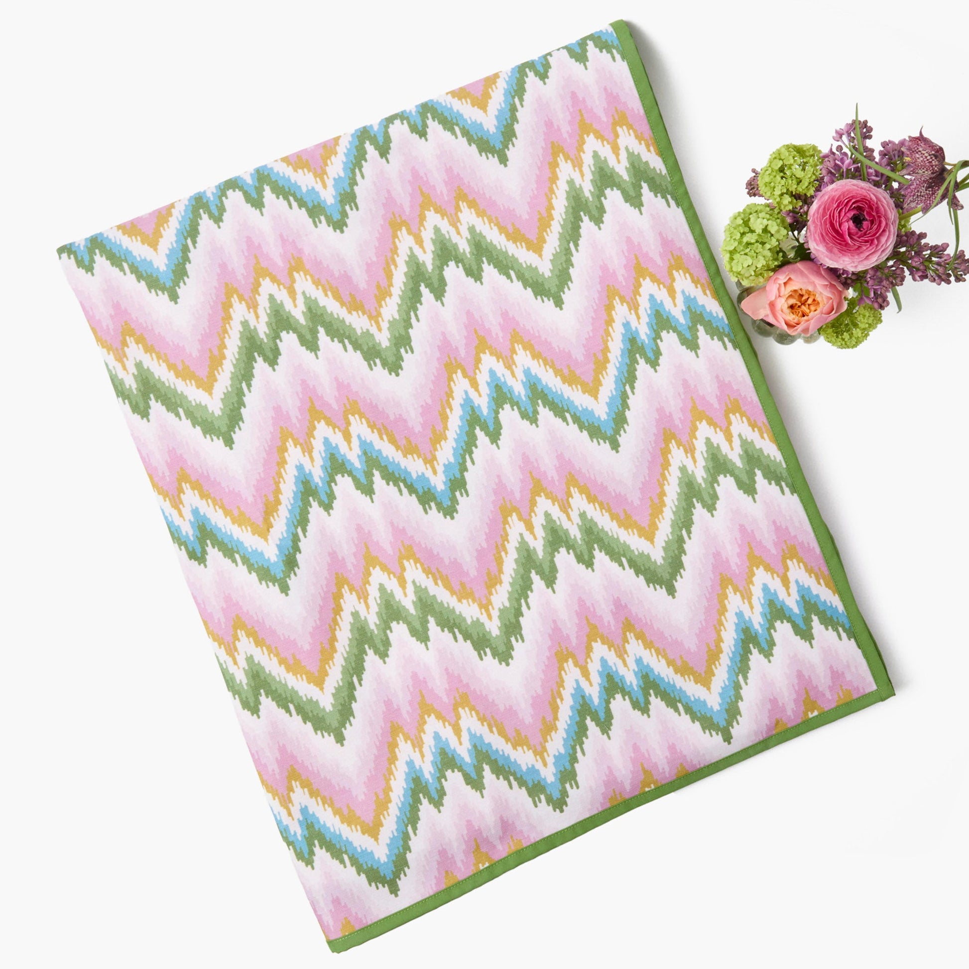 Inspirée de la broderie traditionnelle espagnole, notre nappe Bargello verte et rose apportera une touche de gaieté à votre table cette saison. Avec son motif ondulé audacieux, ce lin coloré attirera tous les regards.