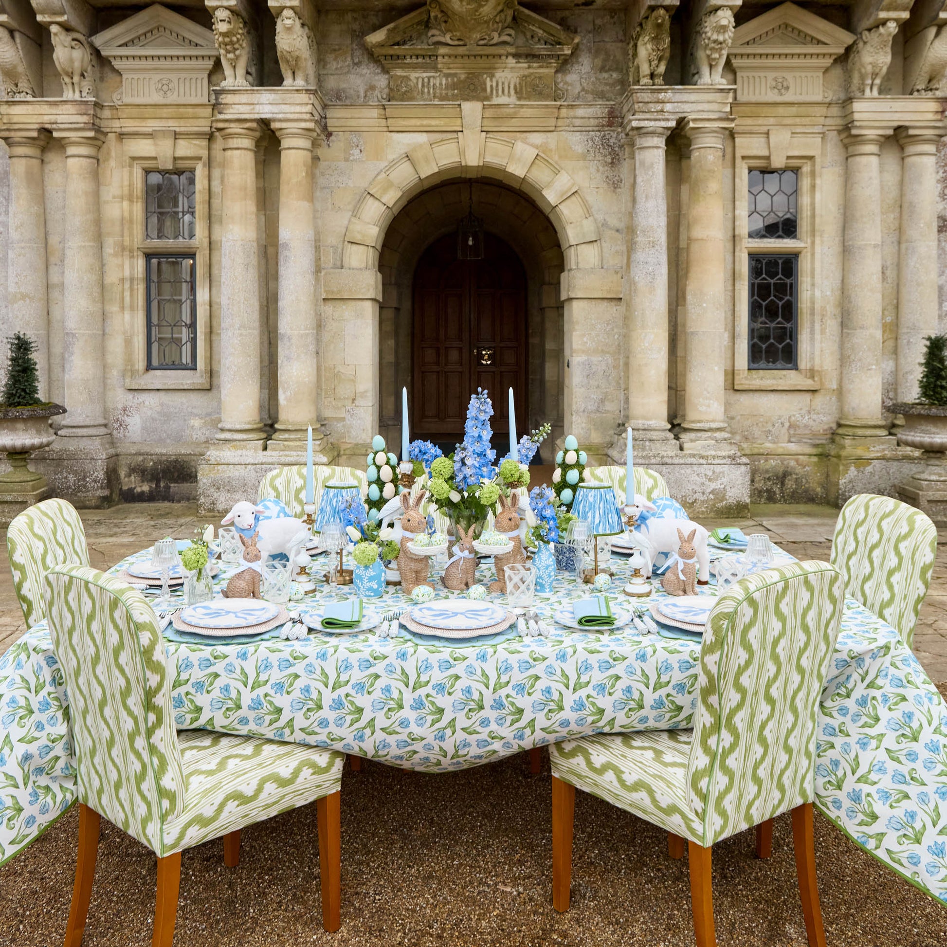 Nos assiettes à dîner et à entrée Marilyn Blue Bow complètent avec élégance vos tables de saison. Disponibles pour quatre personnes, ces assiettes en céramique sont aussi jolies seules qu'emboîter. Chaque assiette est ornée d'un magnifique motif de nœud bleu au centre, encadré d'une bordure raffinée.