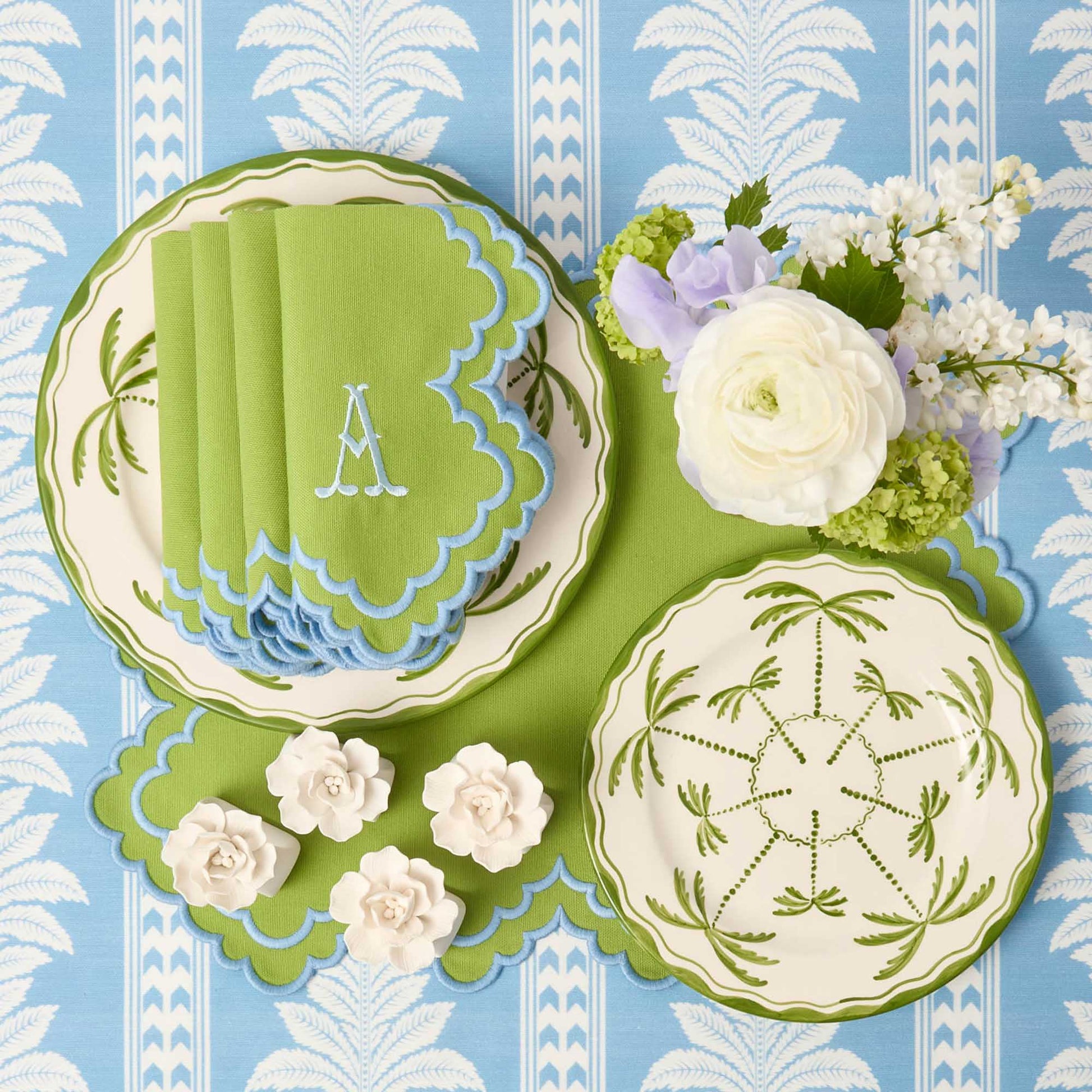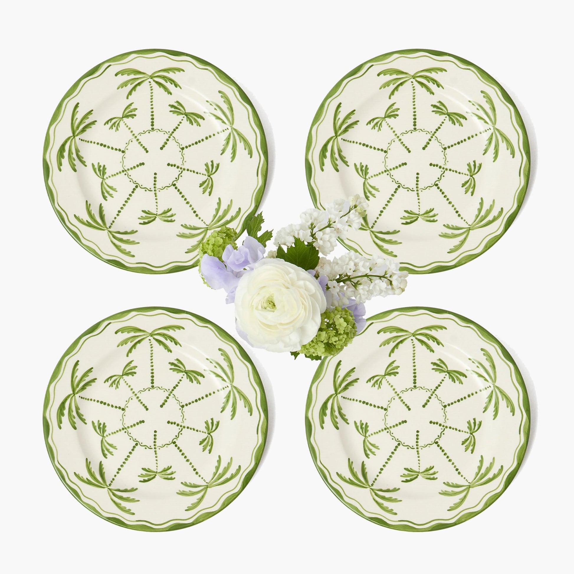 Imprégnez-vous de la verdure andalouse avec nos assiettes d'entrée Palmera. Ces quatre assiettes en céramique arborent une bordure captivante et des motifs de palmiers verts frais en leur centre. Leur teinte vibrante et leur design tropical en font le service idéal pour partager antipasti et autres en-cas estivaux.