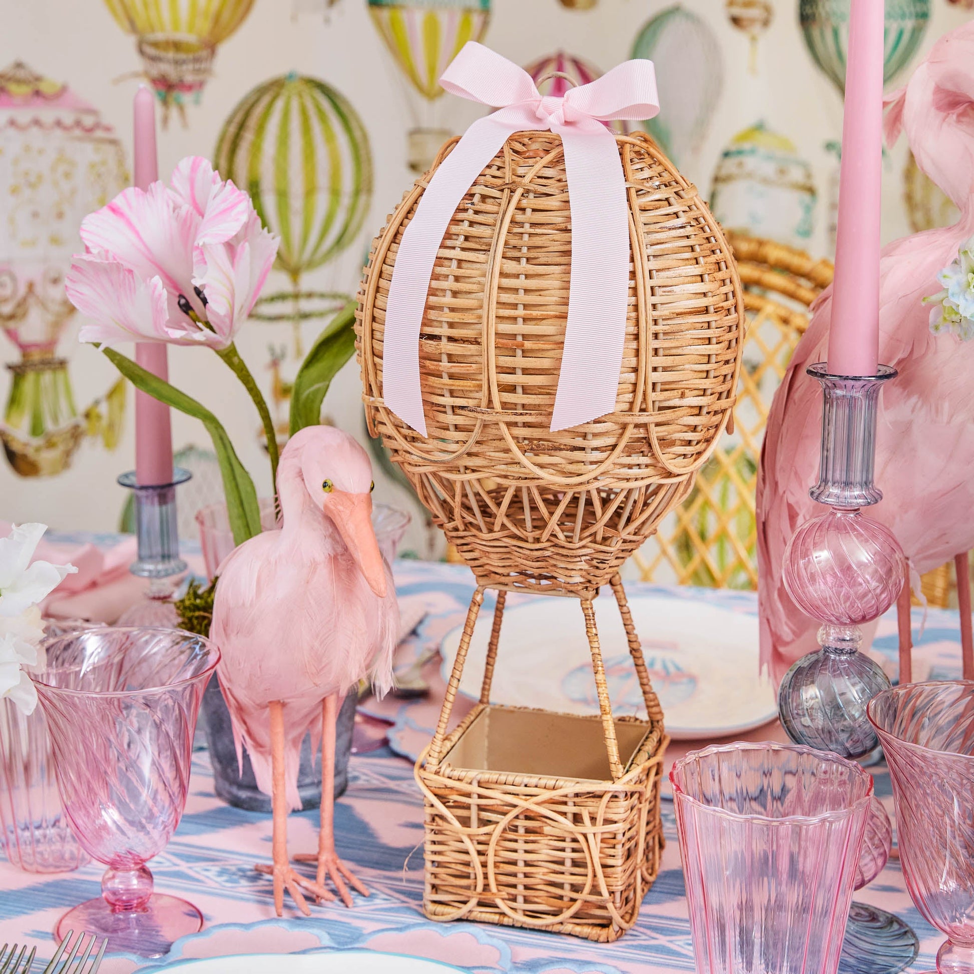 Cette montgolfière en rotin accrocheuse met en valeur n'importe quelle surface sur laquelle elle est placée.