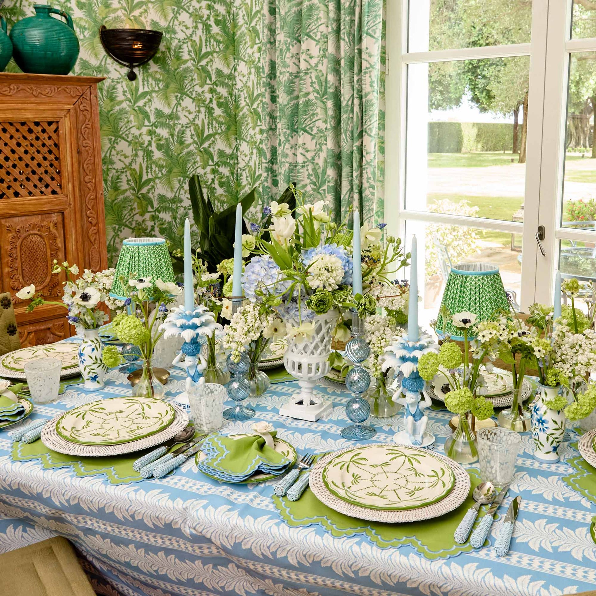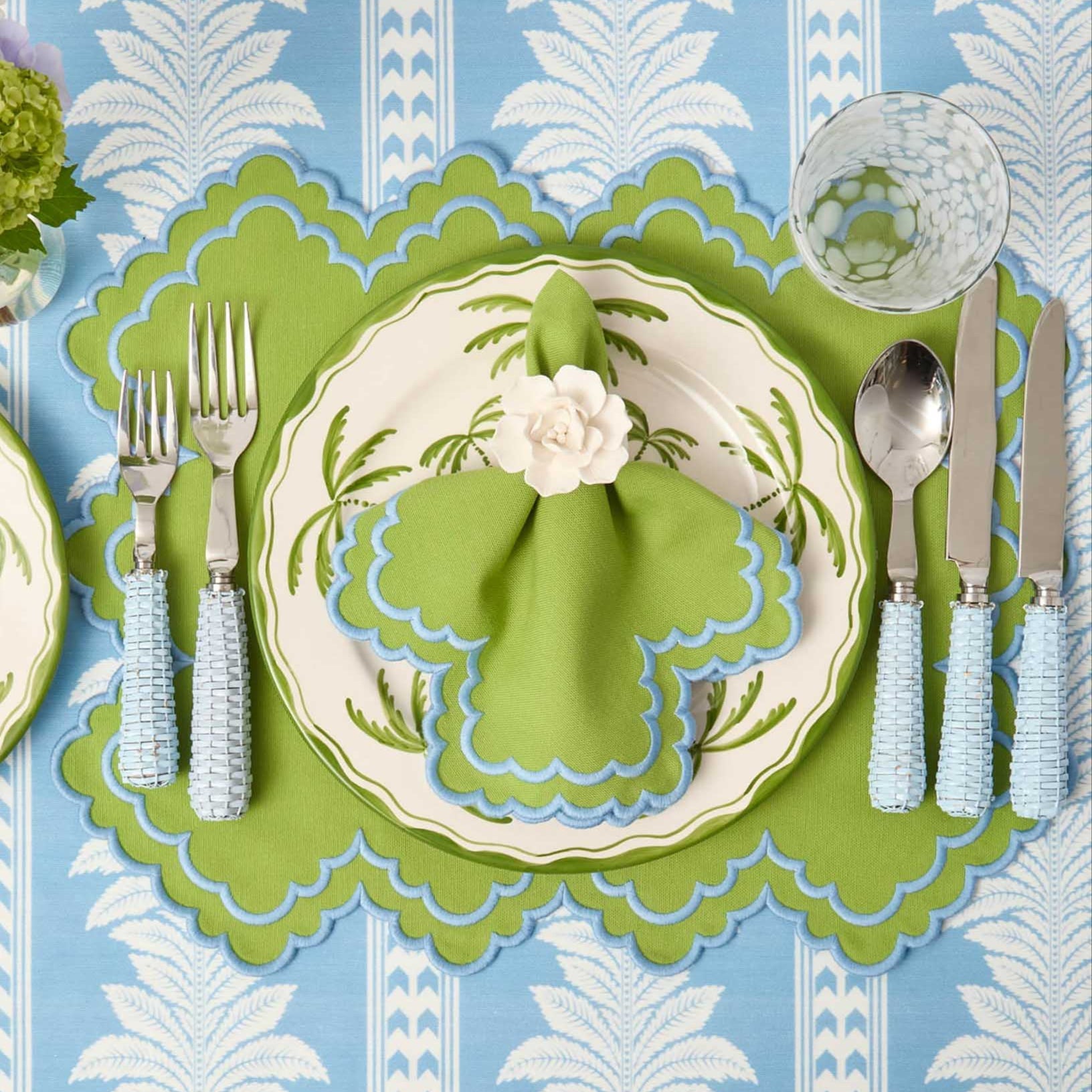 Nos sets de table Scarlett vert et bleu apportent une touche ensoleillée à chaque table. Vendus par lot de quatre, ces sets verts sont rehaussés d'une bordure bleu azur, parfaite pour mettre en valeur vos plats préférés.