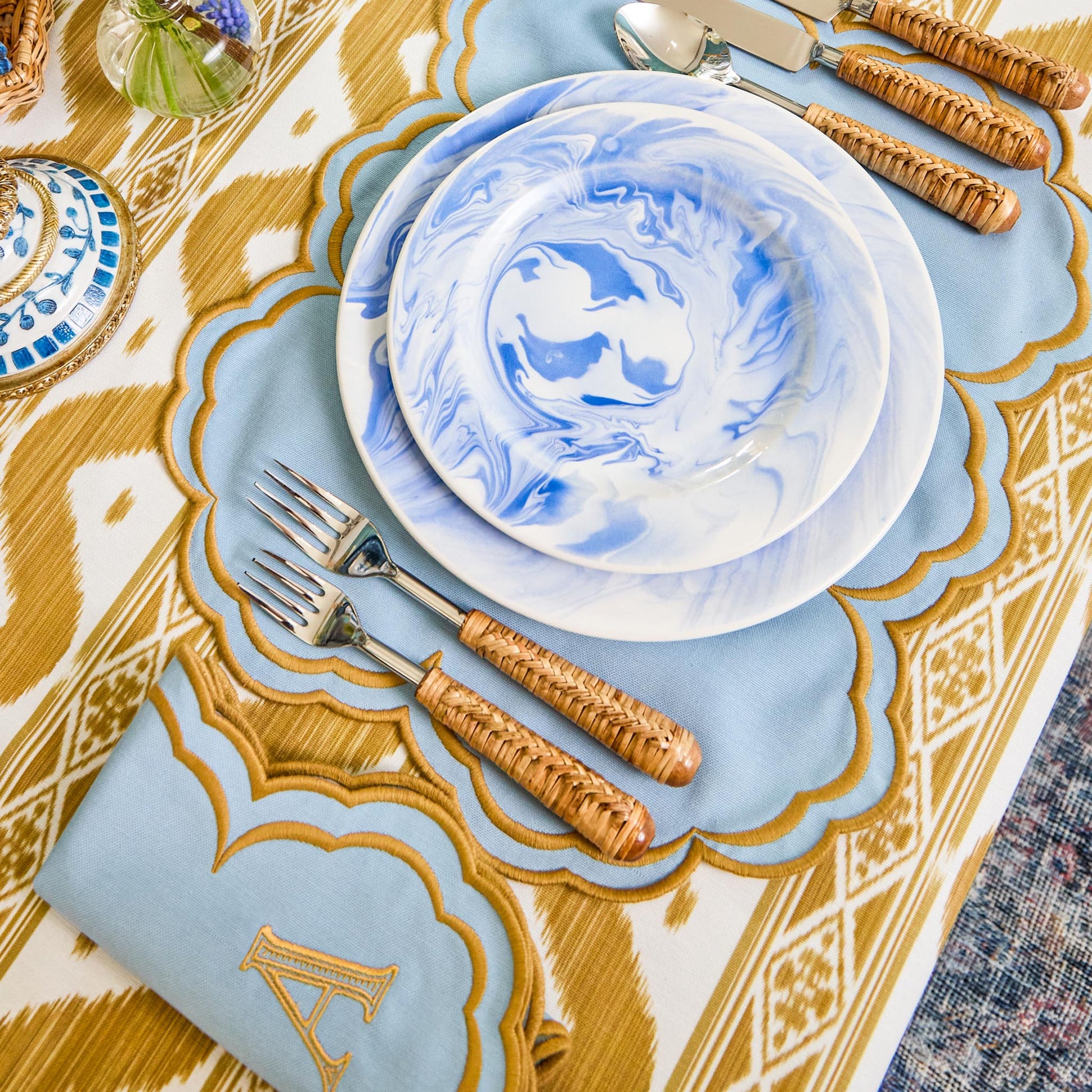 Nos sets de table Serena bleu et caramel sont la base idéale pour vos délicieux plats. Vendus par lot de quatre, ces sets bleu clair arborent une bordure caramel raffinée qui s'harmonisera parfaitement avec nos serviettes.